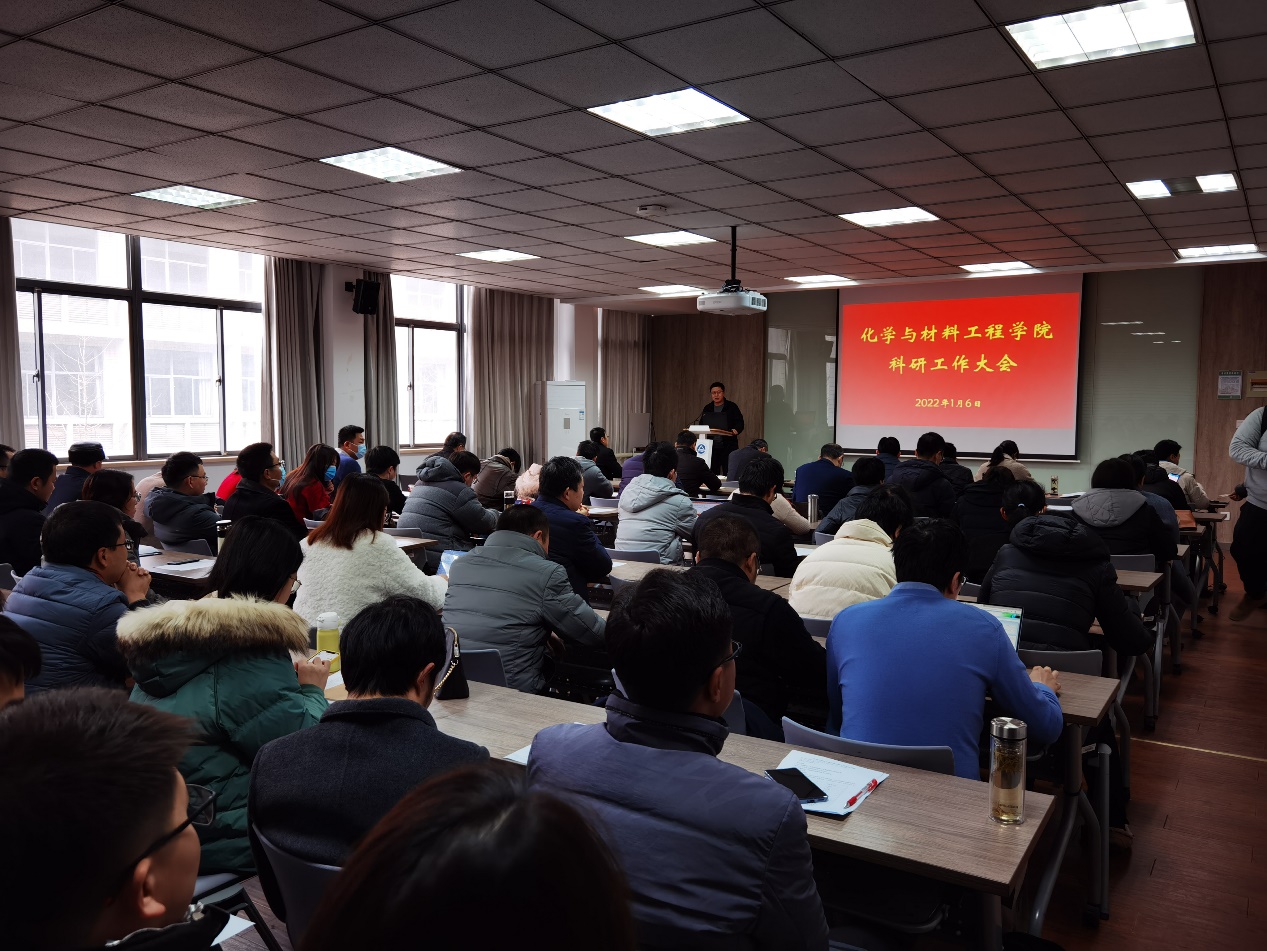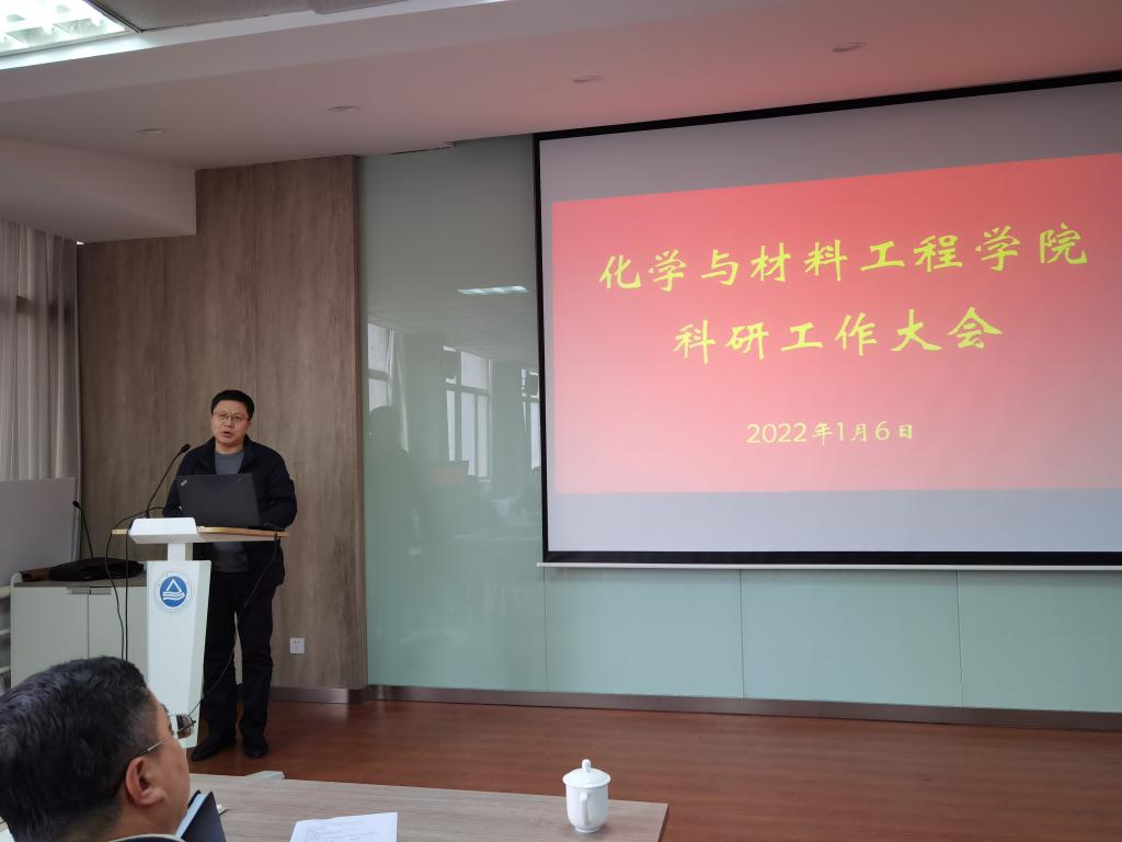 在化工楼A316会议室召开科研工作会议,邀请专家分享科技服务政策和经验、汇报学院年度科研进展和团队介绍交流。产业技术研究院院长刘龙教授、 黄漫