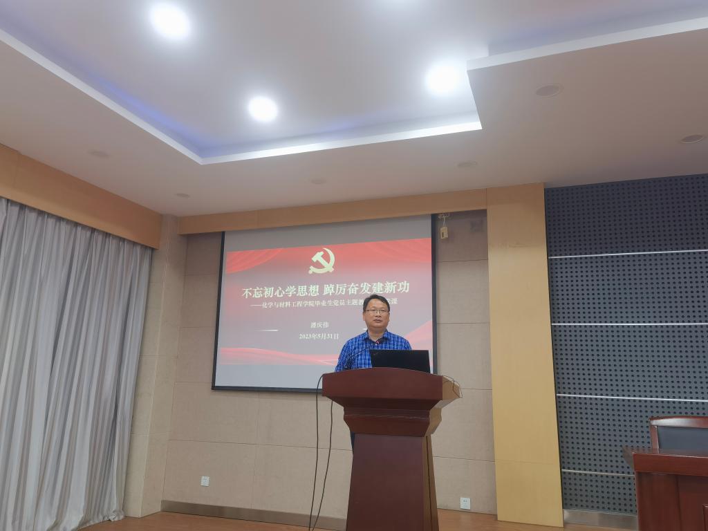 潘庆伟指出,党员的第一标准是政治标准,要将坚定不移讲政治、关键时刻讲政治放在首位并渗透进自己的日常一言一行。全体毕业生党员要深刻理解“两个确立”的决定性意义,时时刻刻做到“两个确立”“两个维护”,同时要不断锤炼“政治判断力、政治领悟力、政治执行力”,坚决同自己学习工作领域的错误意识形态问题作斗争,努力成为一名优秀的知识分子党员。潘庆伟指出,长期以来学院坚持深耕特色学科领域、坚持特色学科发展,在相关学科领域取得了一定的历史地位,实现了“美丽事业、健康事业、民生事业”的意义和价值,在不断满足人民群众对美好生活的向往方面作出了江南化工人的贡献。今后,学院还将在此基础上,结合国家区域发展战略,始终坚持“四个面向”,不断完善学院学科布局,坚持特色发展和转型发展同频共振之路。希望同学们能够在未来事业发展领域、发展方向紧密结合学院优势,坚定坚持、自信执着,不断完善视野、开阔视野。潘庆伟要求,全体毕业生党员要始终坚持底线思维,坚持对自身党性的高标准严要求,在任何时刻始终牢记自己的党员身份,老老实实做人、扎扎实实做事。要坚持廉洁奉公,党员同志将来无论在什么行业从事何种工作,始终要坚持“不忘初心”,始终坚持将党的“党要管党、从严治党”方针政策熟记于心。