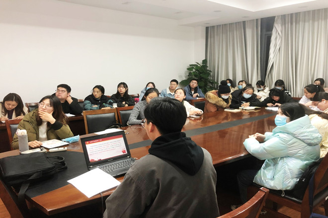 会议第一项议程,由马克思主义学院预备党员高洋同志从《决议》的历史逻辑与现实逻辑以及夺取新民主主义革命伟大胜利、完成社会主义革命和推进社会主义建设、进行改革开放和社会主义现代化建设、开创中国特色社会主义新时代、中国共产党百年奋斗的历史意义与历史经验、新时代的中国共产党等方面对《决议》的内容进行领学。他指出《决议》是对我们党一百年来从小到大、从弱到强,团结带领全国各族人民从胜利走向胜利的伟大历程的深刻总结,为我们在党的领导下继续夺取新时代中国特色社会主义新的伟大胜利具有重要的现实意义和深远的历史意义。