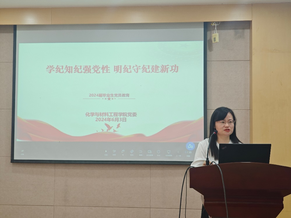 2024届毕业生党员教育在化工楼B329举行。学院党委副书记、副院长董霞,党建专职组织员张青,党建辅导员杨璇以及全体毕业生党员参加此次会议。