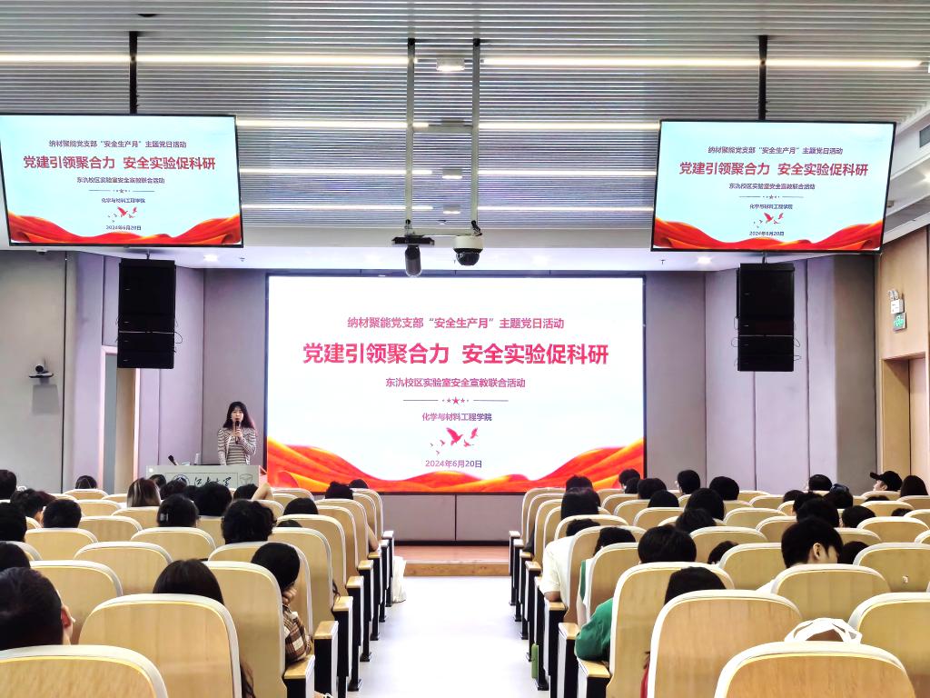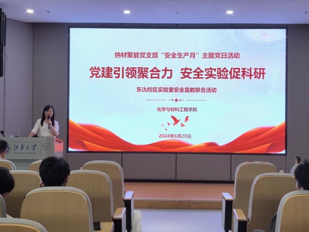 为深入学习贯彻习近平总书记关于安全生产的重要论述和指示精神,落实教育部关于校园安全稳定工作的部署要求,值此全国第23个“安全生产月”之际, 为增强师生实验室安全意识和应对突发事件的能力,营造浓厚的实验室安全氛围,6月20日,纳材聚能党支部开展“党建引领聚合力,安全实验促科研”实验室安全专题活动。本次活动特别邀请了上海飞域实验室设备有限公司总经理杨安兴、经理何鑫和无锡粒子云信息科技有限公司工程师庞丽丽进行专题讲解。黄漫