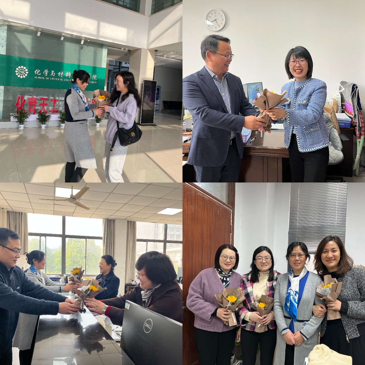 三八节当天,学院内外荡漾着春日的温馨和节日的浪漫,学院分工会为每位女教工准备了鲜花,院领导们迎接、走访了部分女教工,送上节日的问候和祝福。