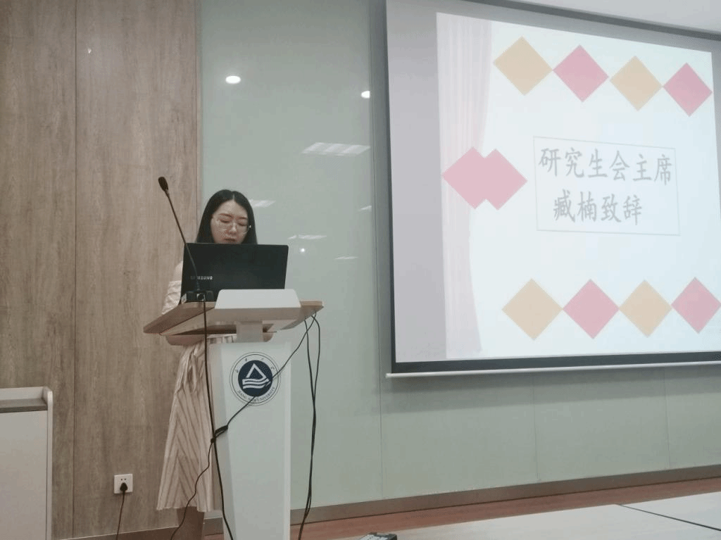 紧接着,由上一届研会干部进行经验交流分享,臧楠主席提出,要加强研会与本科生、研究生的交流,扩大研会的影响力,从而提高同学们的参与度。分团委书记任增亮老师为新一届研会干部颁发聘书并做总结讲话,首先对研会过去一年的工作给予了肯定,对新一届的留任干部的积极奉献精神表示感谢,同时提出了新的要求,他强调研会干部要积极投入善于思考,加强创新;要提高活动的参与度,扩大影响;要切实在工作中锻炼提高,收获成长。同时特别提出在未来的工作中要在思政引领工作有所加强。