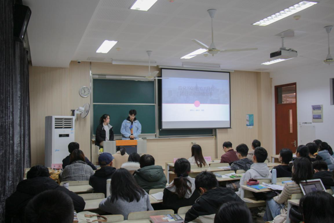 本学期分团委已发布六项团日活动主题,分别是“传承红色基因,铭记最可爱的人(抗美援朝70周年)”、“脱贫奋斗数载,回望脱贫攻坚战”、“增强大国自信,建设外交强国”、“学习党的十九届五中全会精神”、“南京大屠杀”以及“纪念毛泽东诞辰”,此次中期推进会选取了上半学年团日活动分数排名前十的班级进行现场总结和展示。各团支部积极投入到团日活动的组织中,集思广益,不断创新活动形式,团结支部团员,提升整体素质。在“传承红色基因,铭记最可爱的人(抗美援朝70周年)”主题团日活动中,应化2002班团支部邀请同学模仿革命老兵,重现烽火年代里的大无畏精神。应化1902班团支部组织班级同学集中观看红色纪录片,通过时光镜头回望血与火的抗战岁月。应化1901班、应化1903班邀请马克思主义学院教师吕庆广进行现场教学,讲述那段艰苦奋斗的革命史。各团支部每月通过开展丰富多样的团日活动,让同学们深入了解革命历史,传承红色基因,进而提升自我、展望未来,切实增强时代赋予的使命感和责任感。