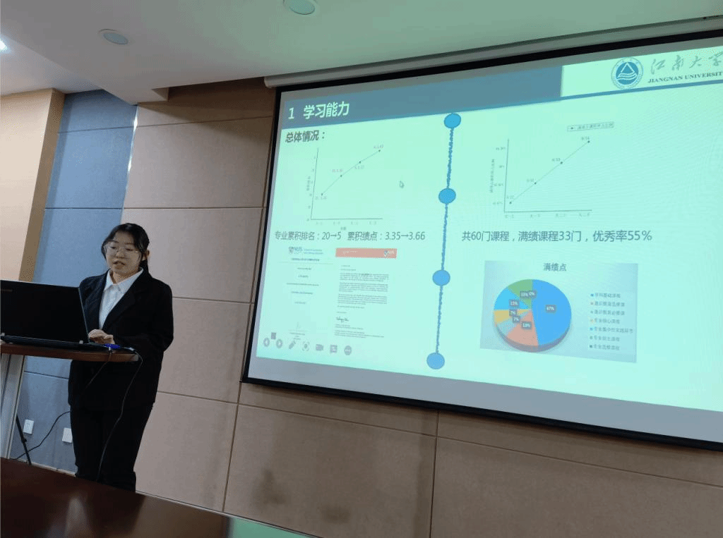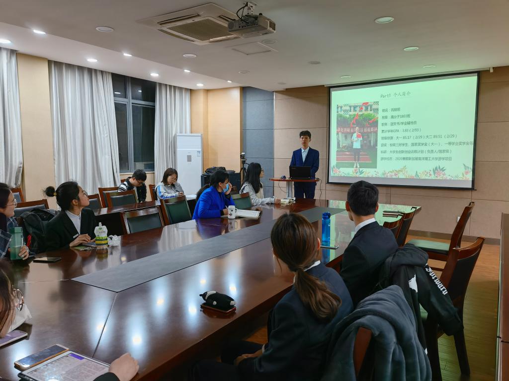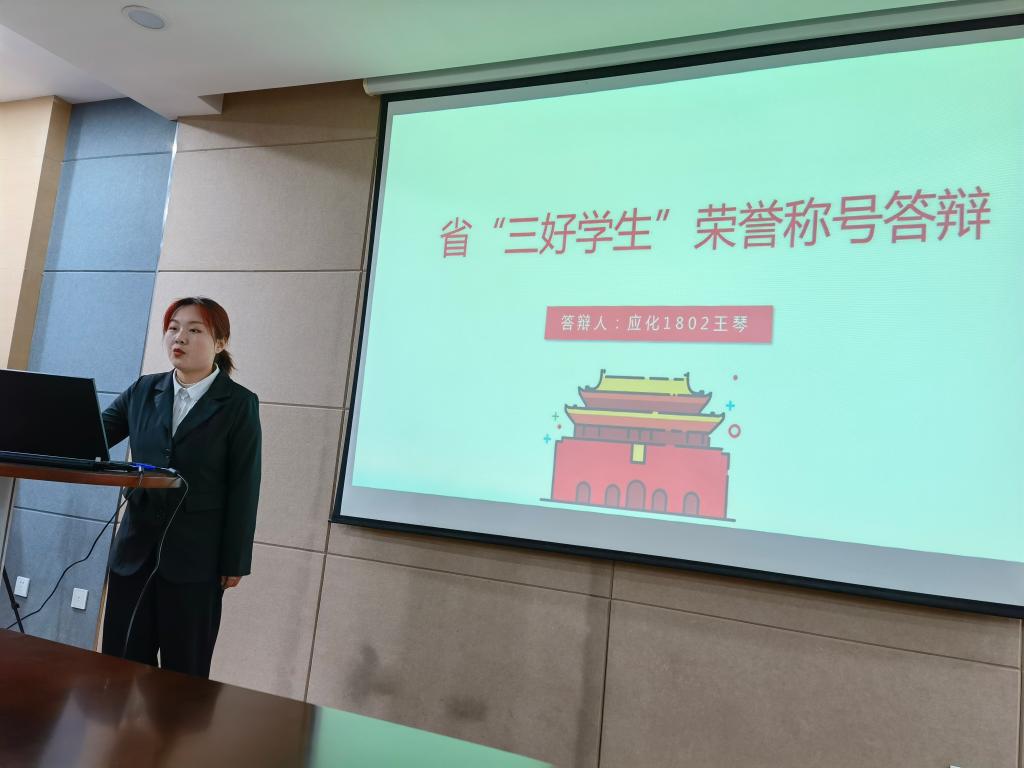 答辩过程中,十名候选人依次上台,通过3分钟的PPT充分展示了自己入学以来在思想政治、学习成绩、学科竞赛、学生工作、社会实践、志愿服务等德智体美劳方面的优异成绩成果,充分展示了个人风采,彰显了化工学院学子良好的精神风貌。