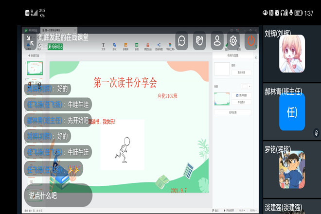 始终致力于培养理想信念坚定、爱国情怀深厚、品德修养高尚、专业本领突出的新时代化工人。在新生入学教育中,学院以培养“德智体美劳全面发展”的人才为教育理念,注重新生综合能力的提升,组织策划“读书分享会”“个人风采展”“新生辩论会”“民族风情秀”等不同主题的线上活动。新生围绕活动主题,或是分享读书心得和入学感悟,或是介绍本人爱好和家乡美食,或是在激烈辩论中探讨人生哲理和社会百态。新生在交流讨论中发现自我,提升能力,共促成长。