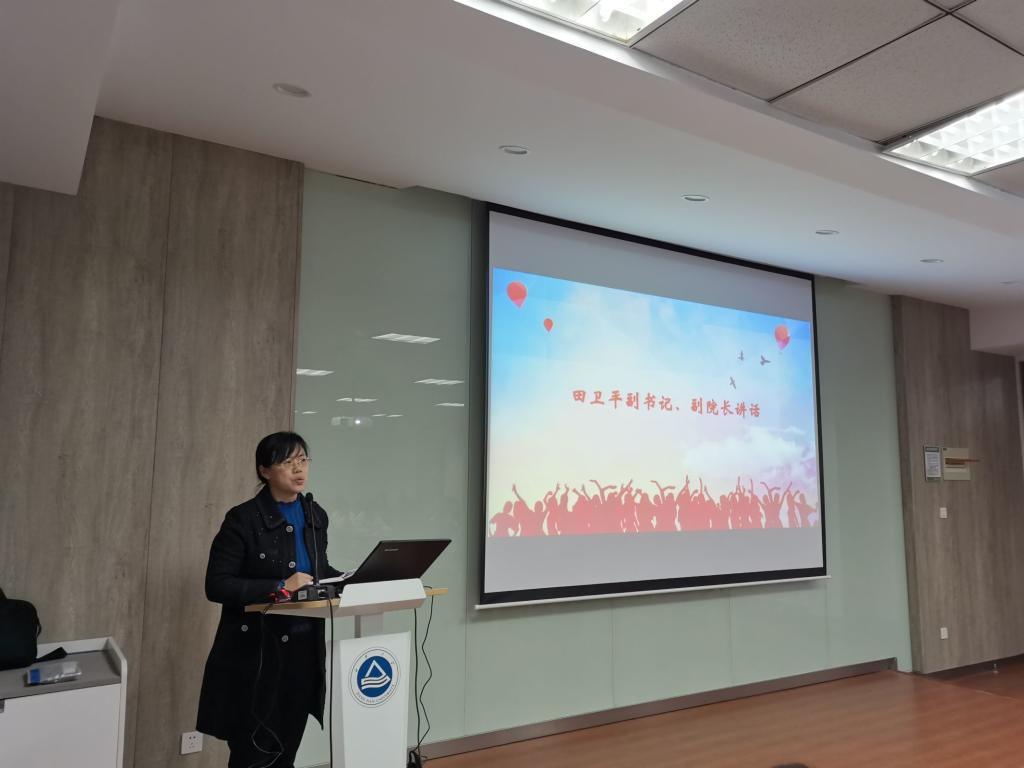 田卫平副书记指出,心理健康工作是学院的基础工作,心理委员是同学们的“守护者”和“天使”,希望大家摆脱心理健康工作“可有可无”“无可作为”的旧思维,充分认识到心理健康工作的重要意义和价值。她指出,心理健康工作需要同学们有一颗充满知识的头脑、一双善于发现的眼睛、一双善于倾听的耳朵、一双善于交流的嘴巴,如果尚不具备这样的能力,那么则可以充分利用心理委员的岗位锻炼自己、提升自己。田卫平副书记还引导大家要在纵向即宿舍、班级、年级、学院等角度加强与各方力量的沟通协调,在横向即与党支部、团支部、学生会、研究生会、社团等学生组织共同丰富心理健康教育活动的形式,做到方法创新、形式创新和人员全覆盖、时间全覆盖。最后,田卫平副书记希望同学们在日常工作中要有更高的站位、更广的视角、更大的责任感,不断追逐光、努力成为光!