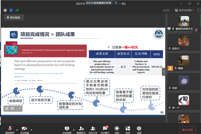 通过线上会议的形式举办2021年大学生创新创业训练计划项目结题答辩会,学院负责“大创”项目管理老师鞠峰,博士第三党支部党员秦静静、王淑钰、张亚宁、章伊婷、崔建兵和王天恒担任本次答辩会的评委,2022年新立项“大创”项目团队成员在线观摩了此次答辩会。