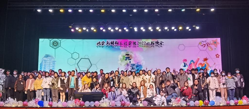 在文浩馆举行2022年“元素”迎新晚会。学院党委书记潘庆伟、党委副书记、副院长田卫平,化工系教授倪邦庆、学工办主任、分团委书记刘凡、辅导员鞠峰、杨璇、高静、郝林青、杭腾,新生班主任朱乙、董亮亮、宋晓青、张旭辉,新进教师代表张旭出席了此次活动。