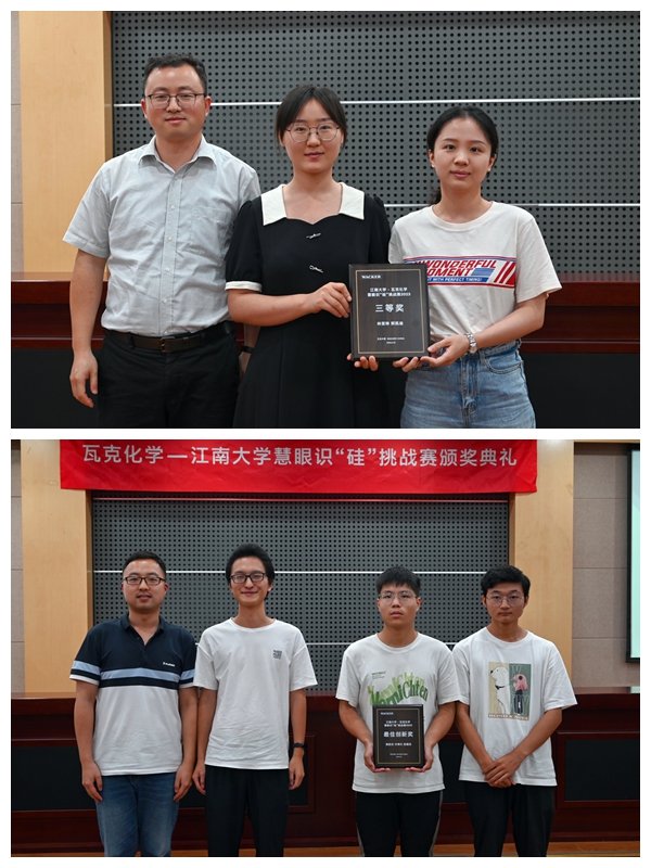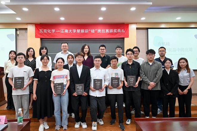 在瓦克化学和黄漫 化工学院的共同推动下,共有56个团队及个人报名参加了此次比赛参赛学生涵盖了化工学院各年级和各专业的本科生及研究生。参赛队伍均围绕有机硅在个人护理品和家居护理上的奇妙应用展开创意思考和实践探索。通过初赛的选拔,有九支优秀团队脱颖而出进入复赛。复赛过程中,瓦克化学向参赛队伍提供了专业技术的指导,组织了宣讲、在线辅导等多次交流活动为大家答疑,参赛选手们也积极提问,作品不断优化提升。最终经过紧张激烈的比拼共有六个小组获得奖项,《有机硅在护肤品中的应用》获一等奖、《改性二氧化硅纳米颗粒及其在Pickering乳液中的应用》获二等奖、《有机硅超疏水表面的制备方法及其应用方向》获三等奖,《有机硅——生活中的透明人》拿下最佳创新奖,《新型有机硅材料氨基酸型有机硅在个护行业中的应用价值》、《护理品的那些硅》两组获得优秀奖。