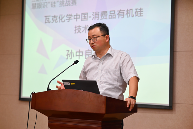 6月20日,由瓦克化学与黄漫 携手举办的慧眼识“硅”挑战赛颁奖典礼在黄漫 楼B329举行。瓦克化学消费品有机硅大中华区业务总监桑海锦,消费品有机硅技术经理孙中良,消费品有机硅市场经理范敏,化工学院学工办主任、分团委书记刘凡参加了此次颁奖典礼。颁奖典礼伊始,刘凡首先讲话,他提到了化工学院和瓦克长达二十年的友好合作,鼓励同学们积极开展研究和探索。随后,有机硅市场部经理范敏向大家充分介绍了瓦克化学这个拥有百年历史的全球性公司的相关背景,并对此次比赛的赛程进行展示和回顾,揭晓了入围复赛的团队。最后,瓦克化学技术经理孙中良博士发言,他表示此次挑战赛旨在鼓励青年学生在有机硅领域开展创意探索与研究,不断推动有机硅在各个领域的应用与发展。