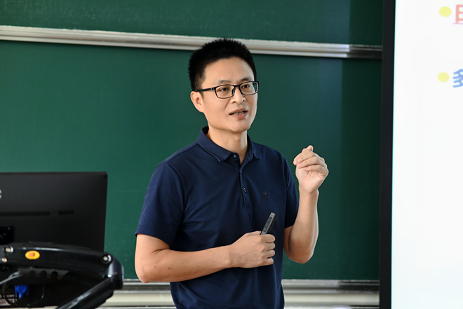 应用化学专业见面会由应化系副主任晏晓东主持。他向新生介绍了应用化学专业的就业方向与前景、专业师资、教学科研实力、人才培养等内容,并着重讲解学院导师制育人模式,详细介绍了大一到大四各阶段双创赋能内容,鼓励学生培养学科交叉科研思维,不断实现个人创新发展。