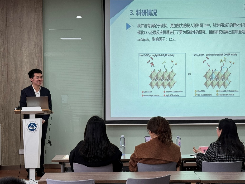 此次答辩活动汇聚了两位博士研究生和两位硕士研究生,分别是21级化学工程与技术博士研究生张亚宁、20级材料化学博士研究生董建成、21级材料专硕班杨梦以及21级化工专硕班李禹锡。学院党委副书记兼副院长董霞、学工办副主任侯玉莹、博士生辅导员高静以及研究生辅导员李晓洁担任现场评委。经过现场ppt答辩汇报和评委提问环节,最终选拔出学院推荐参与校级“十佳研究生”评选的两位候选人。