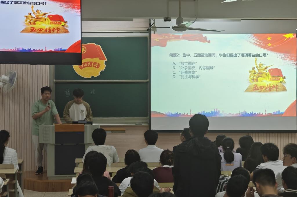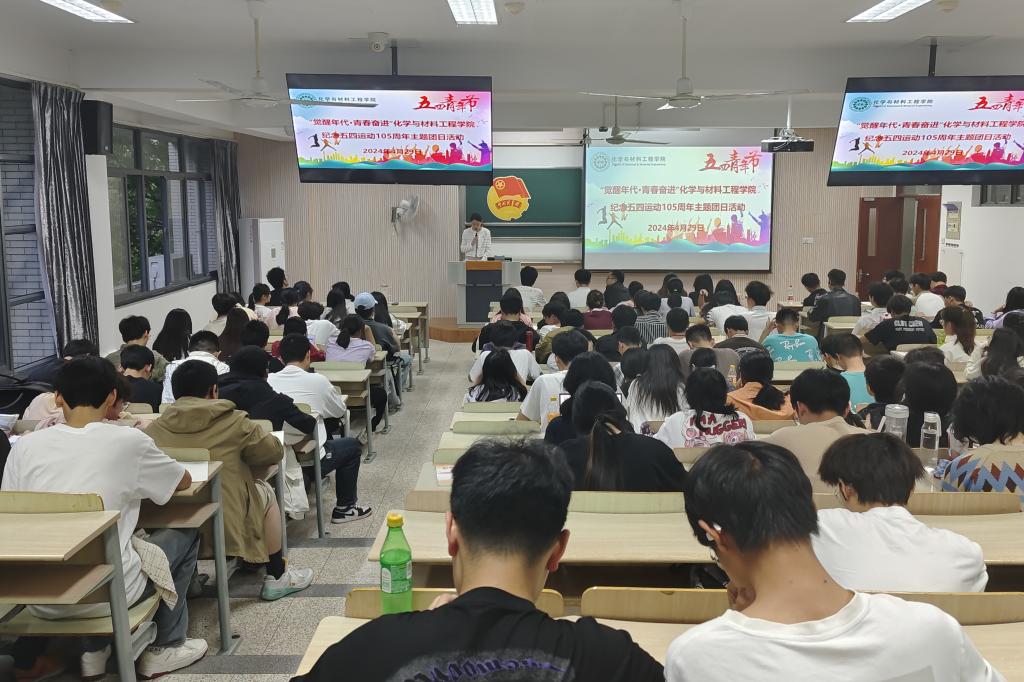 在2C212教室举办“觉醒年代,青春奋进”纪念五四运动105周年主题团日活动。学院分团委书记兼学工办主任鞠峰、2023级本科生辅导员马航威、“青年工程”学员、入党积极分子和团员青年代表共150余人参加活动。