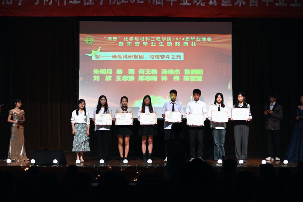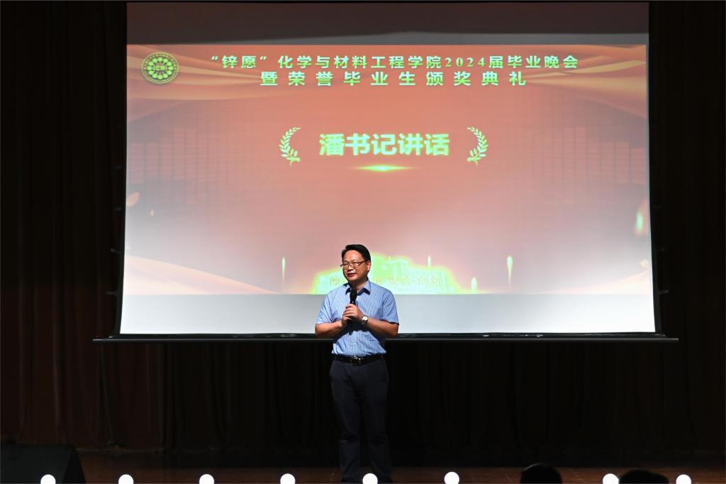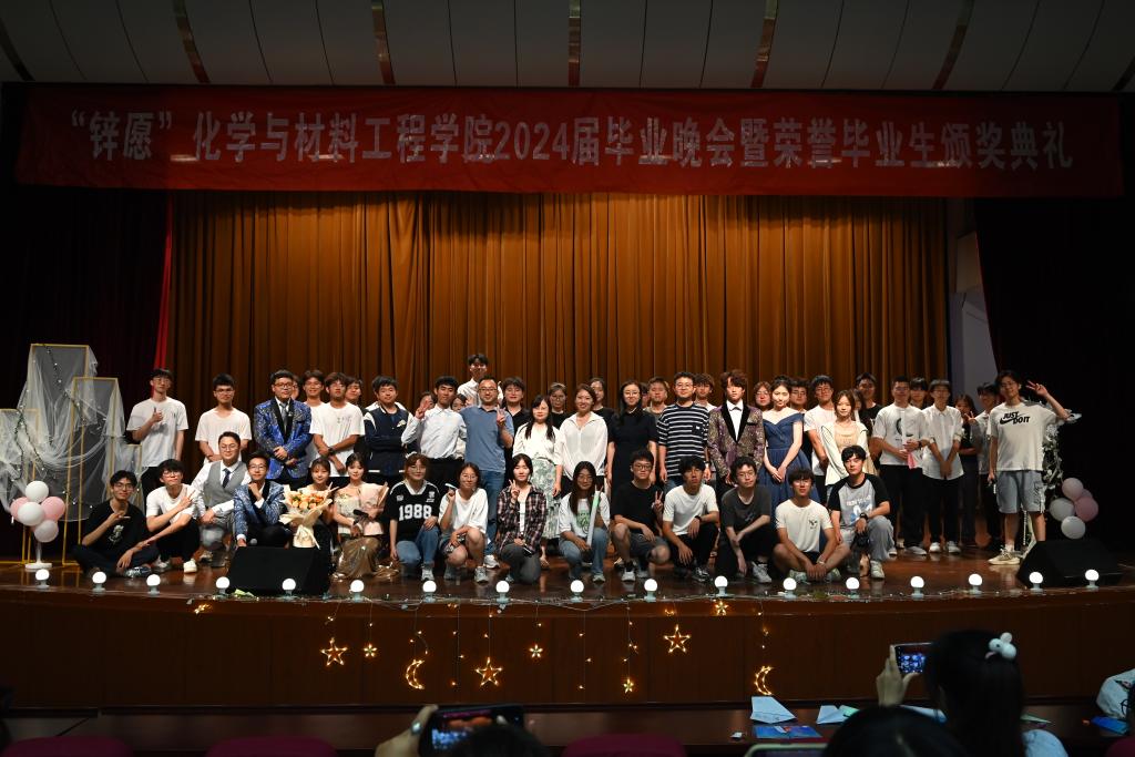 2024届毕业晚会暨荣誉毕业生颁奖典礼在南区活动中心举办。化工学院党委书记潘庆伟,党委副书记、副院长董霞,毕业班级班主任代表,分团委、学工办老师及毕业班同学出席晚会。