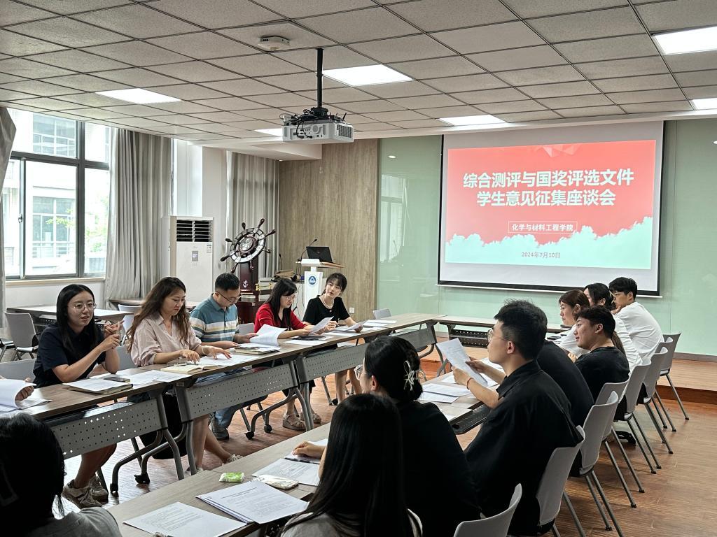 于化工楼A316 会议室成功开展关于学院研究生综合测评及国家奖学金评定实施细则修订学生代表座谈会。化工学院党委副书记兼副院长董霞,分团委书记鞠峰,研究生辅导员侯玉莹、高静、李晓洁及研究生各班级代表参与本次会议。