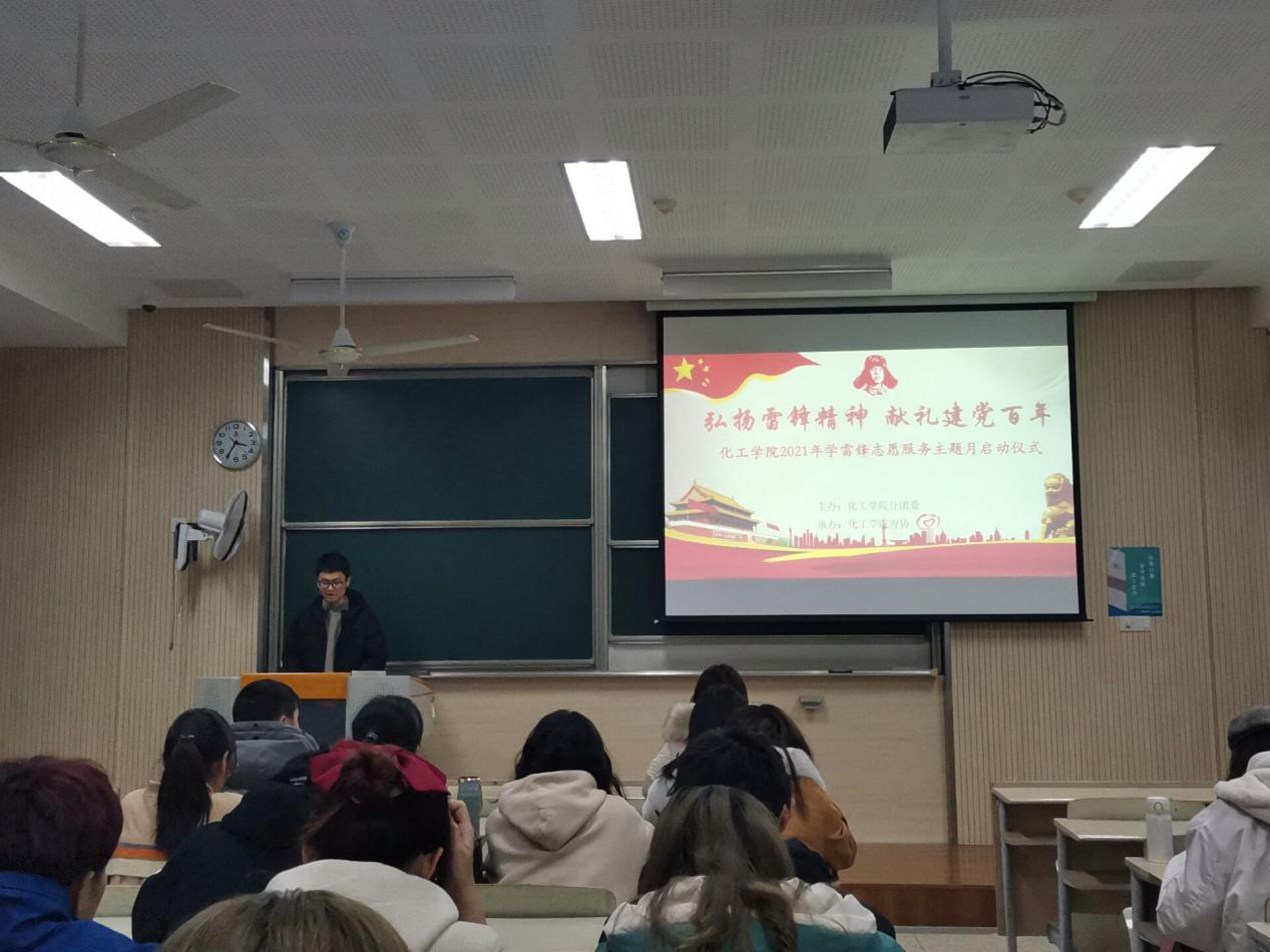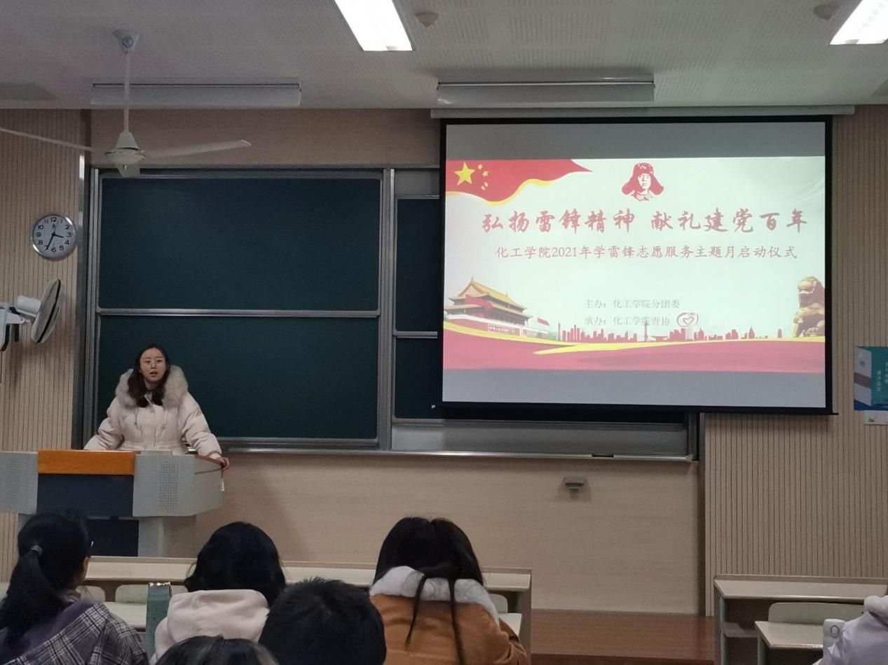 于3月5日下午举办了2021年“学雷锋”志愿服务主题月启动仪式。学院2019级辅导员高静老师出席了此次仪式。此次仪式是由化工学院青年志愿者协会葛文昊同学进行主持。