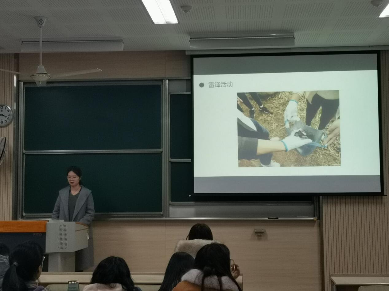 之后由雷锋特称团支部-应化1901团支部书记罗鹏禧和高分子1703班班长顾欣怡分别分享了本班关于传承和发扬雷锋精神的具体实践。罗鹏禧同学分享了雷锋精神不仅仅局限于帮助他人的刻板印象,更要提倡干一行专一行的雷锋钉子精神,认真钻研专业知识,学好专业课。顾欣怡同学则十分重视在日常的活动中更好践行雷锋精神,他们参与实践行动,如参加马拉松志愿者活动,成为社区志愿者,去长广溪捡拾垃圾等等。两位团支部的发言为同学们树立了学习雷锋精神的榜样,同时也引导了同学进一步认识雷锋,领悟雷锋精神的真谛,立志勤奋学习,服务学校、服务社会、做新一代雷锋精神的传播者、弘扬者、践行者。