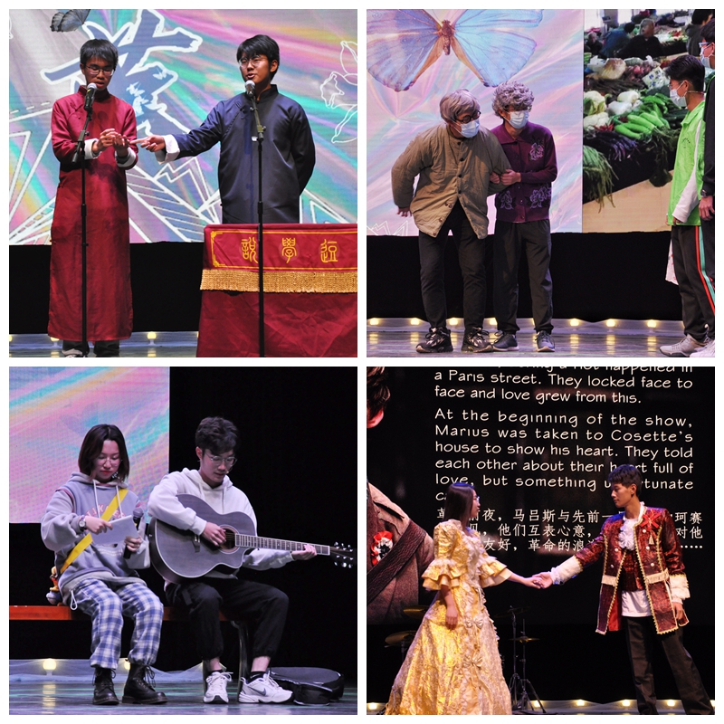 本次晚会由15个节目组成,歌曲《冬鸣》《One-pot reaction》《jojo黄金之风》以美妙的歌声表现出了化工学子的丰富情感。舞蹈《寄明月》凄美惊艳,《View ok》动感十足,《初智齿》《Play baddest》活力四射,将本次晚会气氛推向高潮。小品《你的月亮我没心》《市场风波》从生活细微出发,喻理于娱,致敬疫情防控一线医护人员,相声《报菜名》令人捧腹,舞台剧《Les Misérables》融合了东西方之美,《Have a nice day》以神秘色彩展示出了特殊角度的思考。教师队伍带来的《歌曲串烧》,学生会的《走秀》以及文体中心的《破•茧》引起热烈反响,获得一致好评。