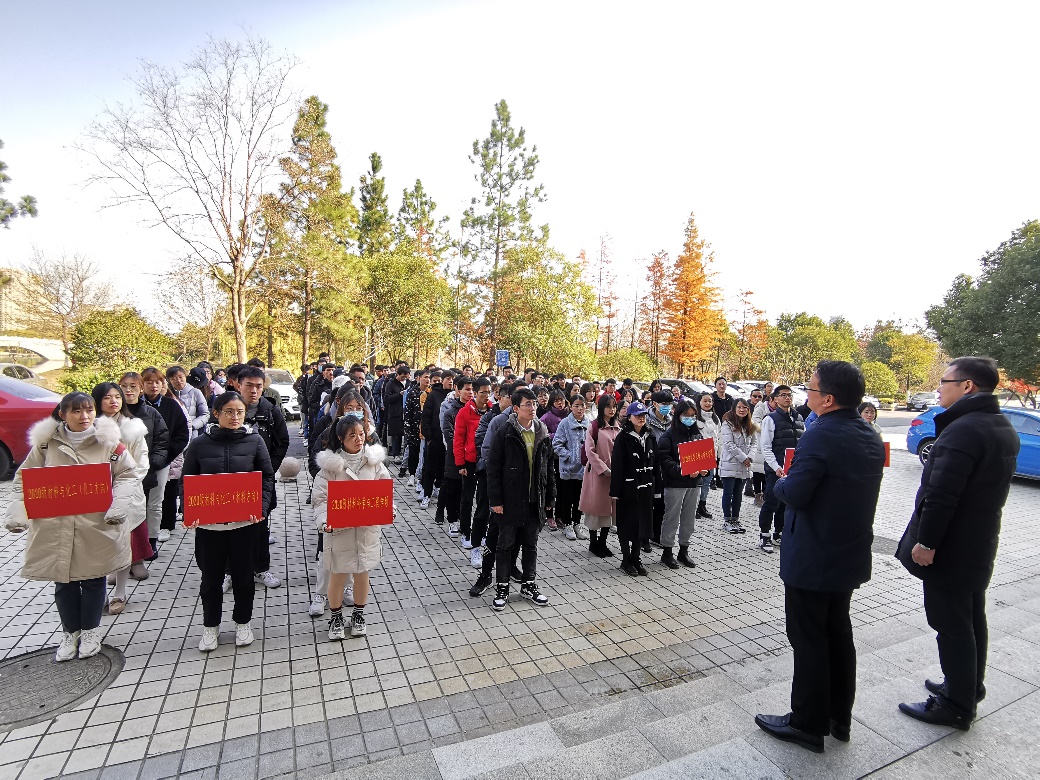 在演习开始前,由潘庆伟书记向全体师生强调了安全的重要性,希望大家能从演习中学到消防安全技能,提高消防安全意识。在实验过程中,我们应保持警惕,重视实验安全和消防安全,同时要做好应对措施,希望大家通过本次演习能增强避险意识和提高安全自救能力,即使面对险情也能临危不乱,处理得当。随后,顾志国副院长向大家介绍了本次消防演习的具体实施流程,并带队前往消防演练地点。