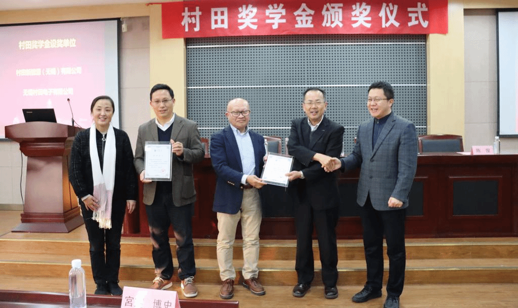 12月24日下午, “村田奖学金”颁奖典礼在化工楼B329举行。出席本次活动的嘉宾有:村田新能源(无锡)有限公司和无锡村田电子有限公司董事长野田慎治,村田新能源(无锡)有限公司副总经理辻篤,无锡村田电子有限公司管理统括部统括部长陈俊等无锡村田公司12位企业代表;机械工程学院党委书记高雪梅,院党委副书记方俊; 黄漫