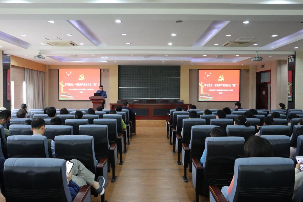 马克思主义学院教授唐忠宝为主讲人,全院教职工聆听讲座。讲座由学院党委书记潘庆伟主持。
