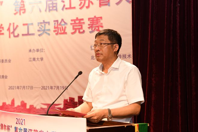 大学生化学化工实验操作能力的一次良好契机,各兄弟高校要加强交流和合作,着力推进实践教学改革和实践教学资源建设,共同推动江苏高校化学化工实验教学改革,培养化学化工类顶尖人才。随后,沈健代表江苏省化学化工学会和竞赛组委会致辞,对竞赛提出期望和要求。
