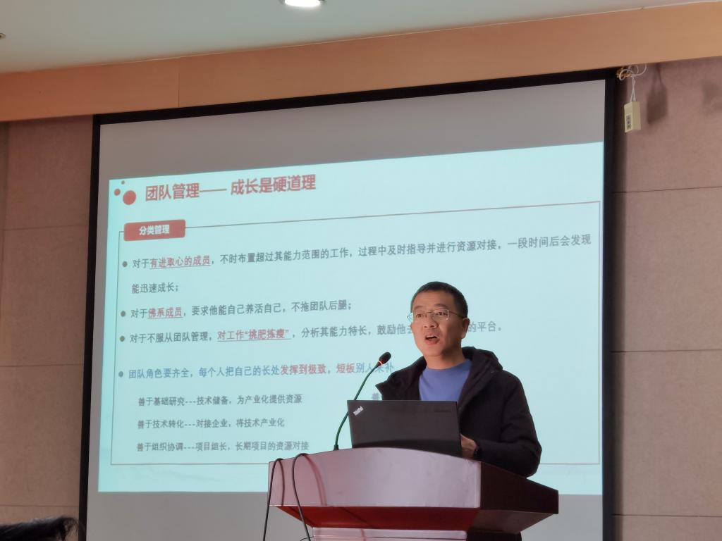 本次培训,学院特邀招就处处长、食品学院生物技术中心赵建新教授做了题为“漫谈科研团队建设”的专题交流,阐明了为什么建团队、建怎样的团队、怎样建好团队等关键问题,并且强调团队要有所为有所不为,团队成员之间要主动补位,建立良好的沟通渠道,为黄漫