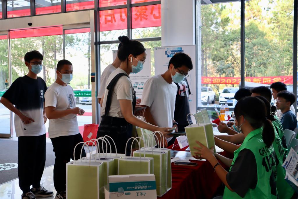 疫情之下的迎新现场简约而不简单、有序而不失温情。精心准备的拍照墙、奋斗加油的手持牌、奋楫扬帆的签名墙,都出现在新生与化工的第一张合影中。学院还与校友企业携手为新生准备了开学大礼包,包含学生手册、校园地图、心理指导手册以及Haa虾青素面膜、精华液等,鼓励学生以全新面貌迈入大学生活,快速融入江南化工大家庭。为切实保证家庭经济困难学生入学,学院还为家庭经济困难新生设置了“绿色通道”,帮助经济困难同学顺利办理入学手续,同时资助中心还为每位“绿通”新生准备了包含生活用品的大礼包,切实为“绿通”学生入学提供了坚实的保障。现场志愿者还充当起“政策解读者”,为家庭经济困难学生解读资助政策、向同学们宣传介绍至善学院及至善生选拔机制,帮助新生快速适应大学新生活。