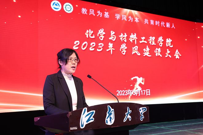 凝心聚力担育人使命,奋楫扬帆启铸魂征程。随后,田卫平发布化学与材料工程学院2023年学风建设方案。她指出,本年度学风建设方案立足教师和学生两个群体,以系科和中心为基础单位构建各系特色的全过程支持体系,以助力青年教师的教学和科研能力提升为手段,通过政治引领、组织引导、典型引路推动实施学院“时代新人铸魂工程”。在学生方面,坚持研本一体化,打造“学思践悟·对标笃行”五个一行动、“学而时习·温故之新”五个微平台,“学以致用·知行并行”五个特色周,“学海争先·强国有我”五大展台传递化工最强音。。