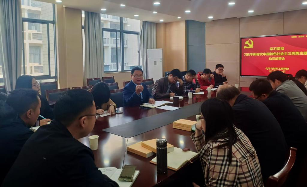 在化工楼A310会议室召开学习贯彻习近平新时代中国特色社会主义思想主题教育动员部署会。院党委书记潘庆伟作动员部署讲话,学院领导班子成员、党委委员、教工党支部书记、辅导员、师生代表出席了会议。