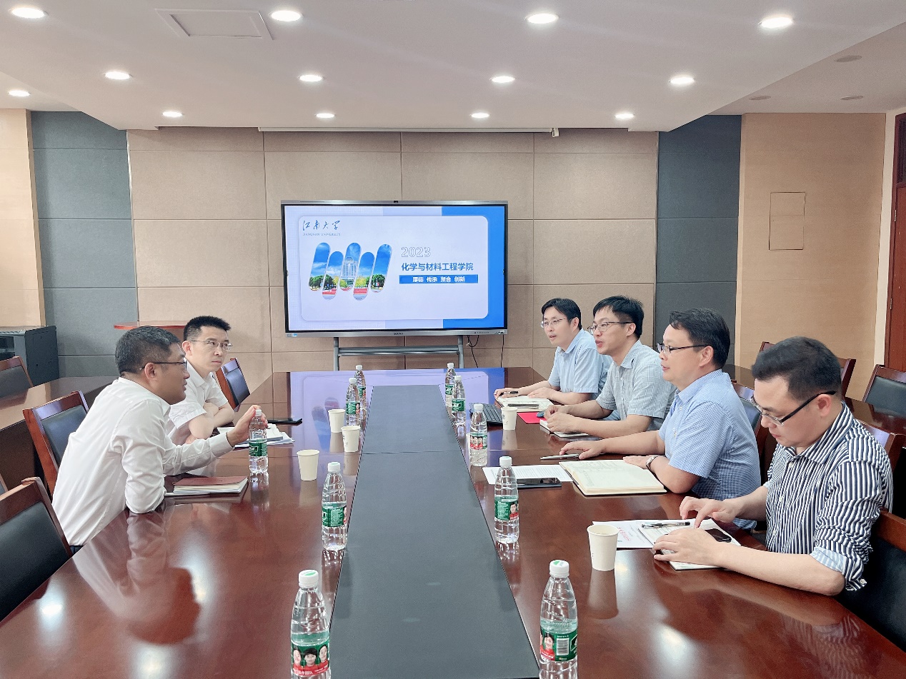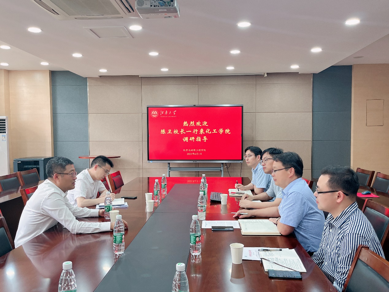 党委书记潘庆伟首先汇报了学习贯彻习近平新时代中国特色社会主义思想主题教育在化工学院走深走实情况。院长刘仁汇报了学院强化面向产业需求的基础学科布局,推进“化工+材料”“基础+特色”的发展战略;优化科研评价体系,重塑科研追求,培育标志性成果的科学研究思路;多层次精准引培,构建可持续、高质量发展人才梯队建设举措;强化平台有组织建设,保评估-再发展-谋升级等方面的思考与谋划。