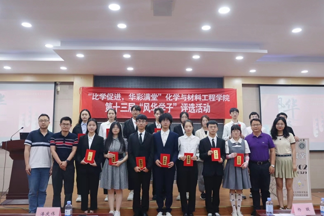 答辩过程结束,高分子2202班雷文杰带来了歌曲《稻香》。经过激烈角逐,朱明月、于杨露、毛羽茜、张诗茹、吴家驹、杨光新、林伟、高持恒、陈思雨、李子洋十位同学脱颖而出,荣获本届风华学子荣誉称号,潘庆伟为获奖学生颁发获奖证书并合影留念。