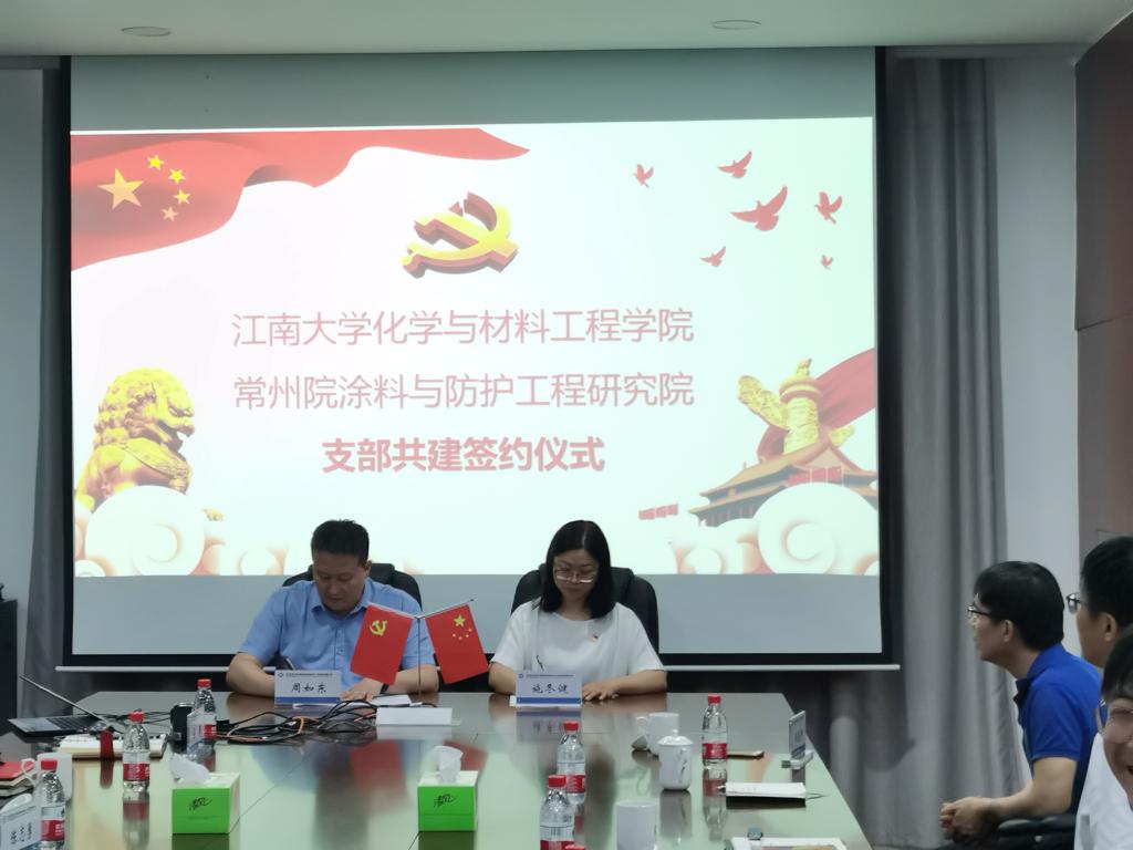 -中海油常州涂料院“教学实习基地”揭牌。随后,材料系党支部书记施冬健与中海油常州涂料与防护工程研究院支部书记周如东签署了党支部结对共建协议。双方达成一致意见,将进一步加强交流,积极探索实践新形势下基层党组织的新模式、新规律,丰富党建品牌、激发党建活力、开创党建新格局、开启党建新征程,以共建凝聚融合党建共识,建立促进基层党的建设取得实效的协作平台,以党建促进全面合作,为中海油常州涂料化工研究院输送最前沿的技术与人才,实现合作新成效,共创辉煌。
