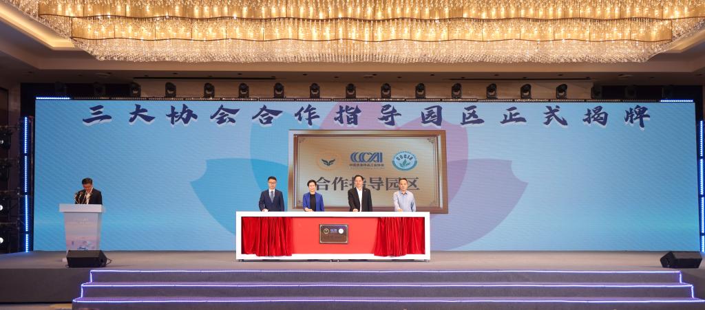 与无锡高新区合作协议。颜江瑛、崔荣国、边峰、盛斌共同为中国香料香精化妆品工业协会、中国洗涤用品工业协会、中国口腔清洁护理用品工业协会“合作指导园区”揭牌。