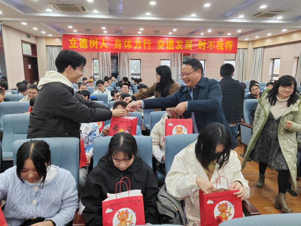 随后,潘庆伟、董霞及各班班主任为考研学生分发考研加油礼包。加油礼包中包括考研上岸定制书签、定制姓名可口可乐、心想事“橙”橙子、“苹”安上岸苹果、“牛”气冲天红牛、金“棒”提名棒棒糖、“薯”你最棒薯愿、“士”不可挡士力架、逢考必过钥匙扣、礼品袋等蕴含祝福的小礼品,同学们纷纷表示感受到了来自化工学院的暖意,并将在最后冲刺阶段全力以赴,争取一战上岸,不负韶华,为院争光。