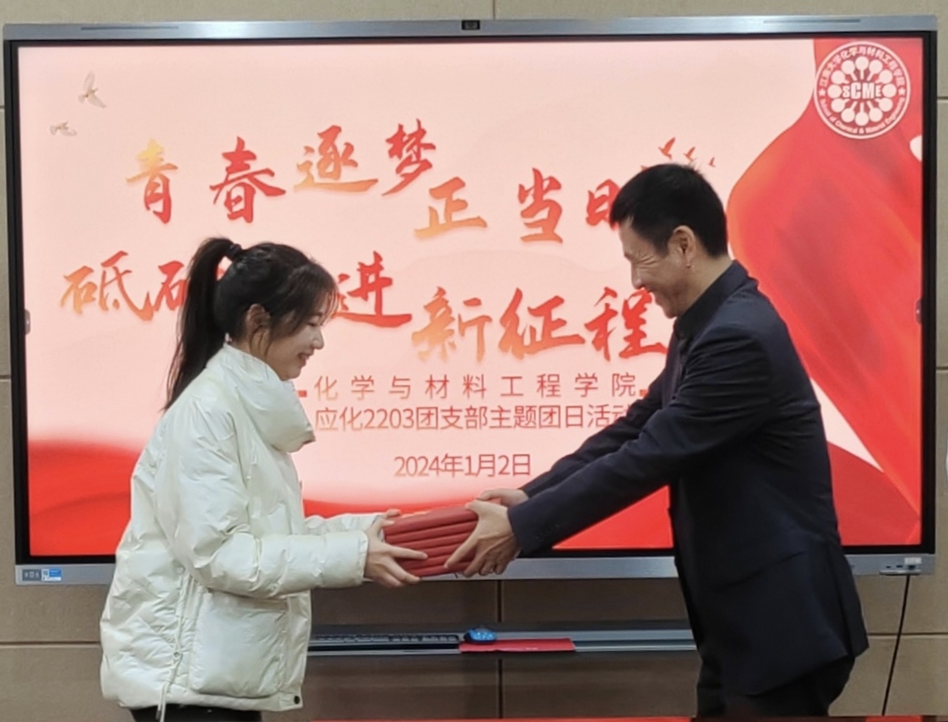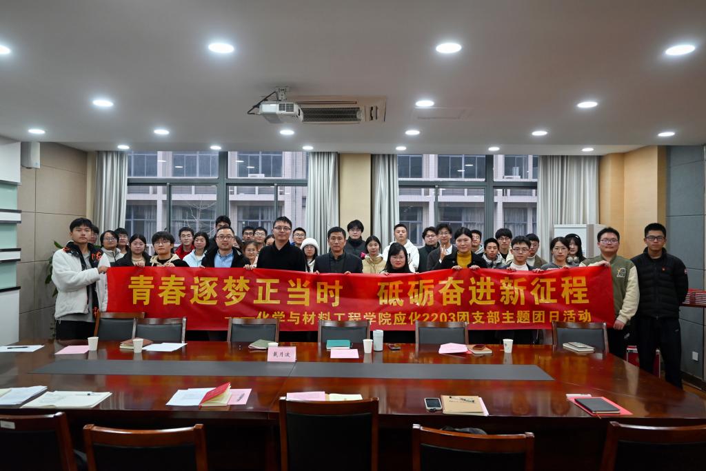 1月2日下午,化工学院应化2203团支部举办“青春逐梦正当时,砥砺奋进新征程”主题团日活动。校党委副书记戴月波出席活动并讲话。化工学院党委副书记董霞、分团委书记鞠峰、应化2203班主任常宽、辅导员杨璇以及应化2203团支部全体同学参加活动。