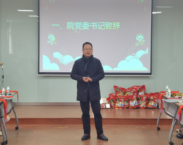 本次活动由学院研究生会主席方承格主持。活动开始,学院党委书记潘庆伟致辞。他对留校学生送上新春祝福,肯定了同学们潜心科研的热情与努力,接着回顾了一年来学院取得的重大突破,未来学院将继续踔厉奋发、大步迈向新征程,最后鼓励同学们要真抓实干,有所作为。潘书记的话语中充满了对同学们的鼓励和期望,在场的学子深受启发。