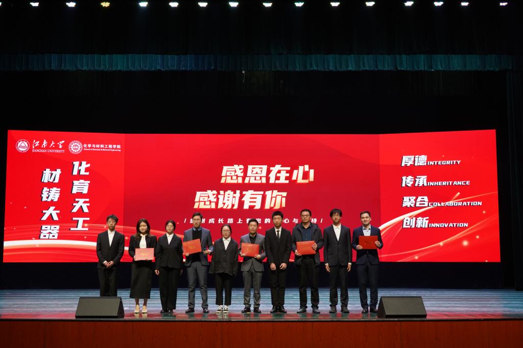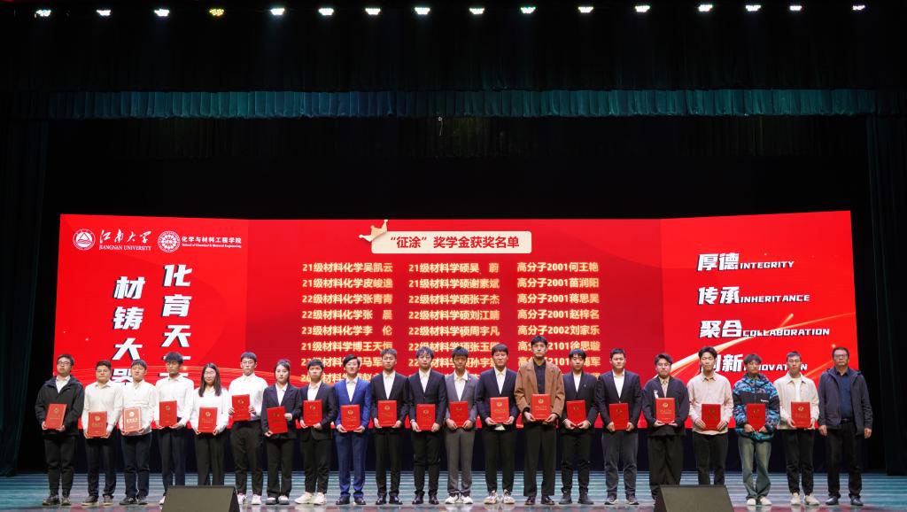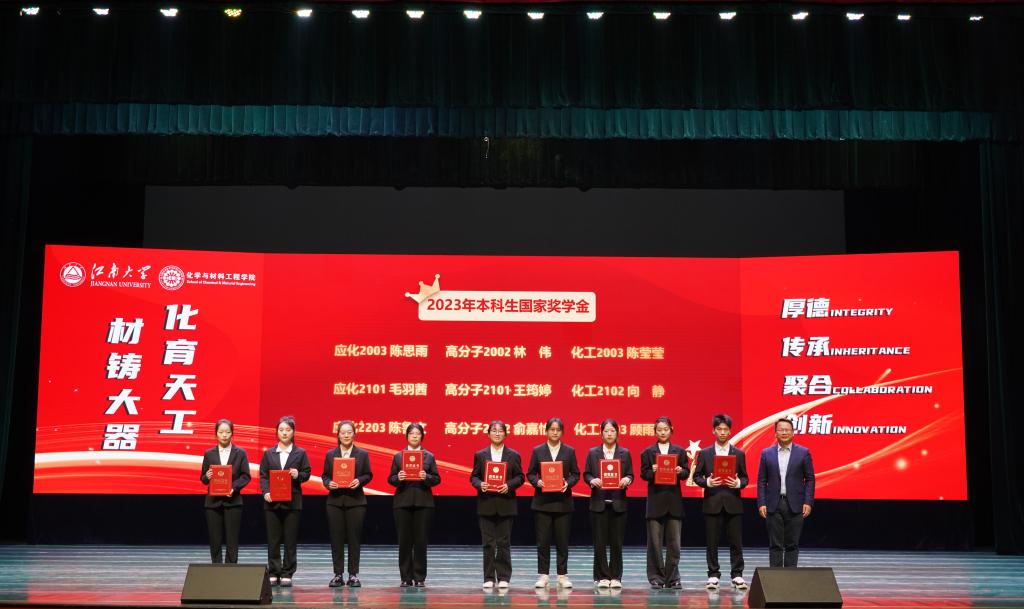 在优秀教师的引领和指导下,化院学子勤奋向学、勇于探索,在学业、科研各领域争当排头兵。大会对2023年度涌现出的学生先进个人和集体进行了表彰。学院党委副书记、副院长董霞、学院副院长王靖宣读先进个人、先进集体及各项企业奖学金获奖名单,此次共有243位同学及7个学生集体获得表彰,学院领导及企业代表为获奖学生颁发荣誉证书,受资助学生为捐资助学企业送上感谢信。学生代表杨梦、姜雨发言。她们结合自身或集体的成长历程,讲述了在院校引导和企业贤达帮助下,实现的一次次突破和跨越,并呼吁广大同学以更加饱满的精神状态和一往无前的奋进姿态启航江南,逐梦江南。