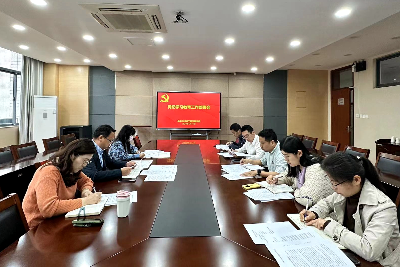 党委在化工楼A310召开党纪学习教育工作部署会,传达学习贯彻习近平总书记关于党纪学习教育的重要讲话和重要指示精神,部署党纪学习教育工作。院党委书记潘庆伟作工作部署讲话。院党委副书记兼副院长董霞、全体教工党支部书记、党建辅导员等参加会议。