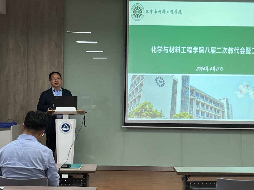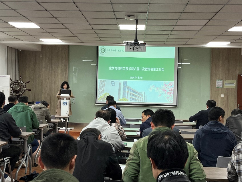 八届二次教代会暨工代会在化工楼A316报告厅隆重召开。学院党政班子、来自学院各系部的近50名正式代表出席大会。会议由院分工会副主席阮小云主持。