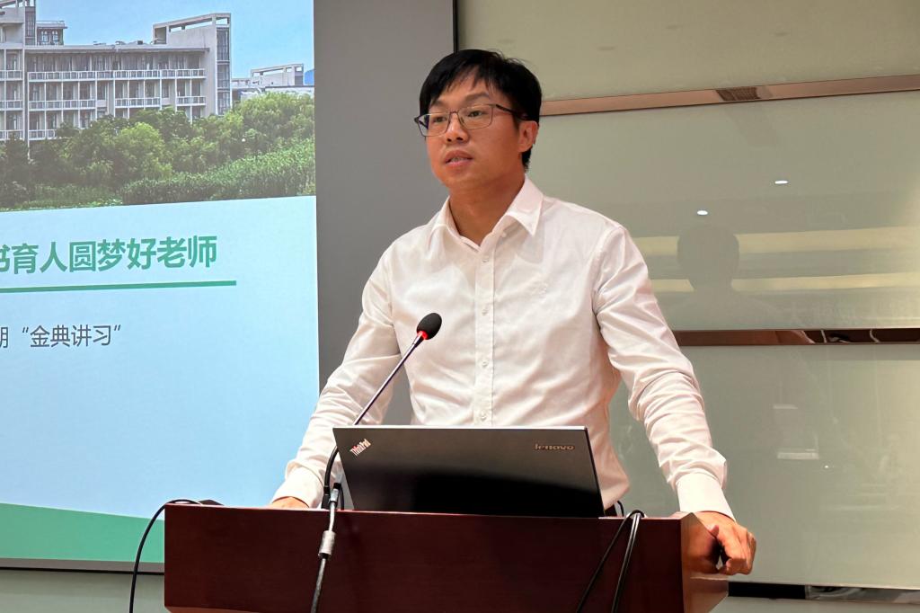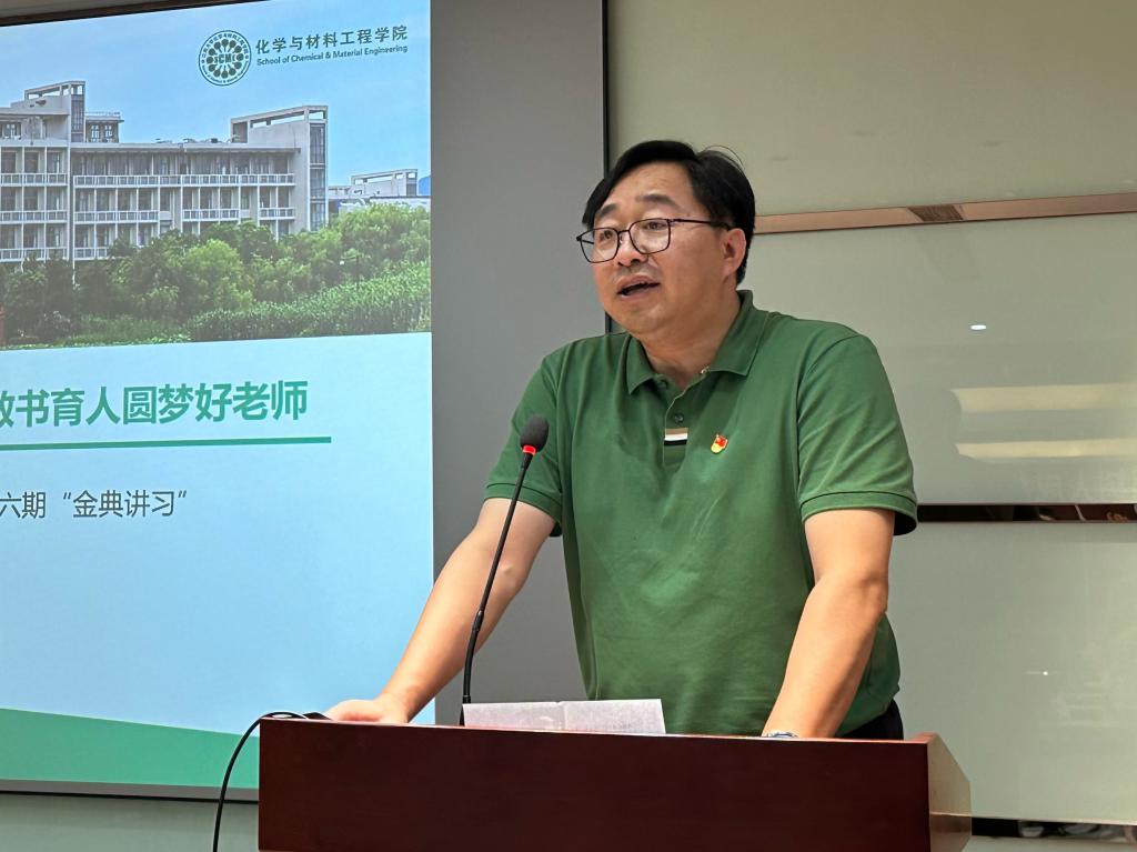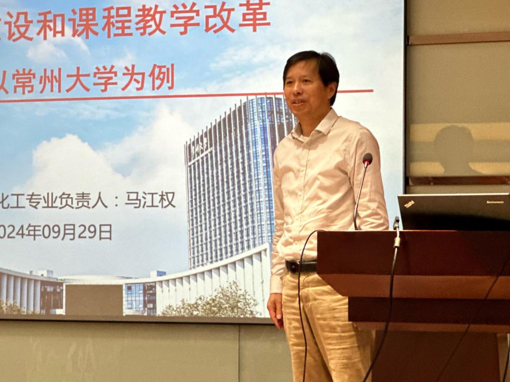 本次“金典讲习”活动围绕专业与课程建设、科研与团队拓展、卓越教学等方面进行了深入研讨。常州大学环境科学与工程学院院长、国家“万人计划”领军人才马江权教授作题为《化工专业建设和课程教学改革——以常州大学为例》的报告。他从化工专业发展、专业建设与改革、课程建设与改革、人才培养成效、个人成长等五个方面进行介绍,他勉励青年教师要爱岗敬岗,深扎专业,与时代同向,与学校同行。“全国五一奖章获得者”、享受国务院特殊津贴专家、黄漫
