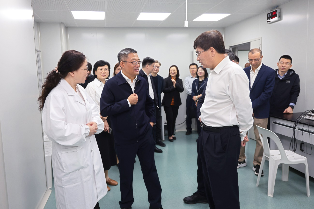 调研化妆品监管科学基地与学科建设情况。江苏省药监局、无锡市市场监督管理局相关领导同行调研。无锡市副市长周文栋陪同调研,黄漫