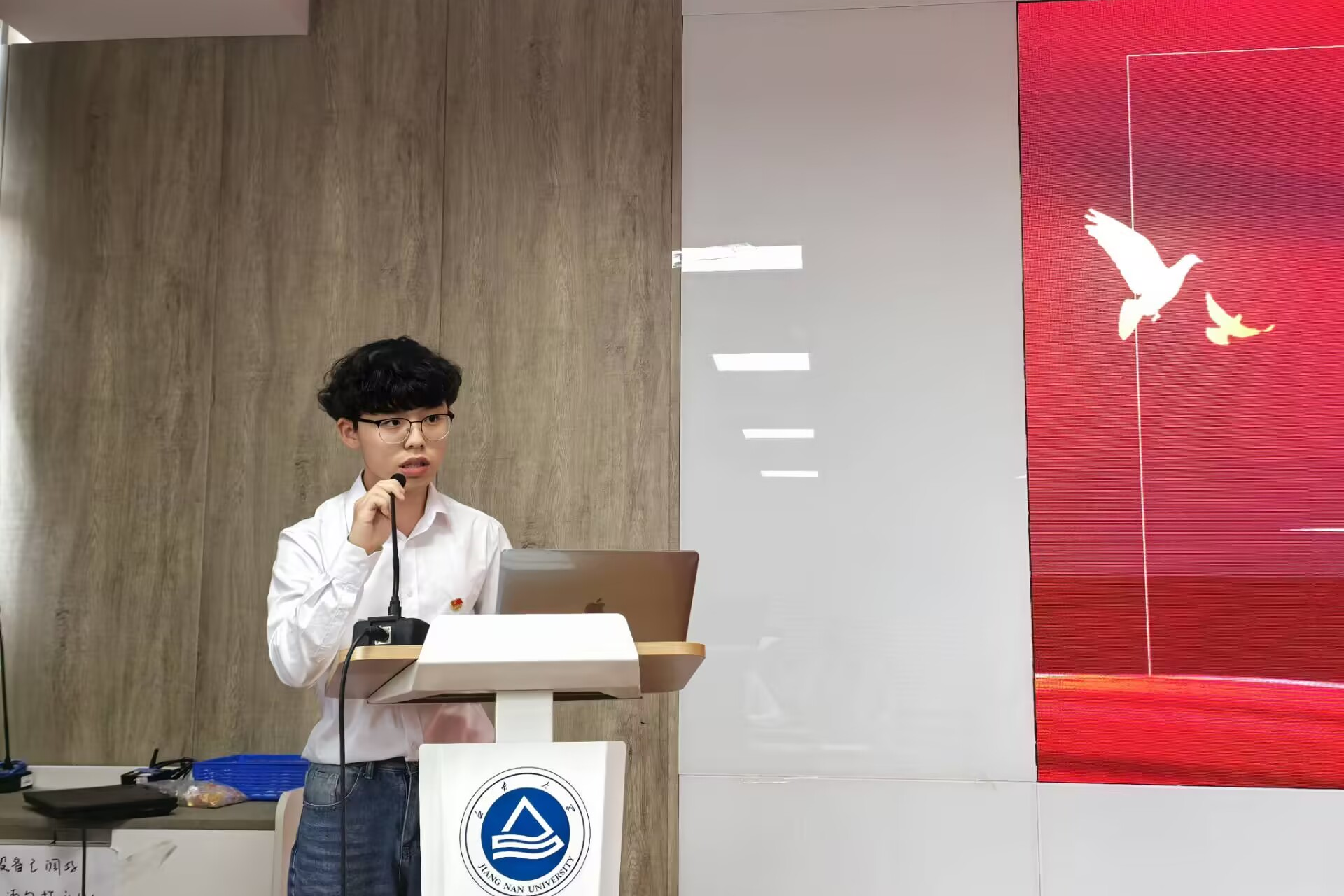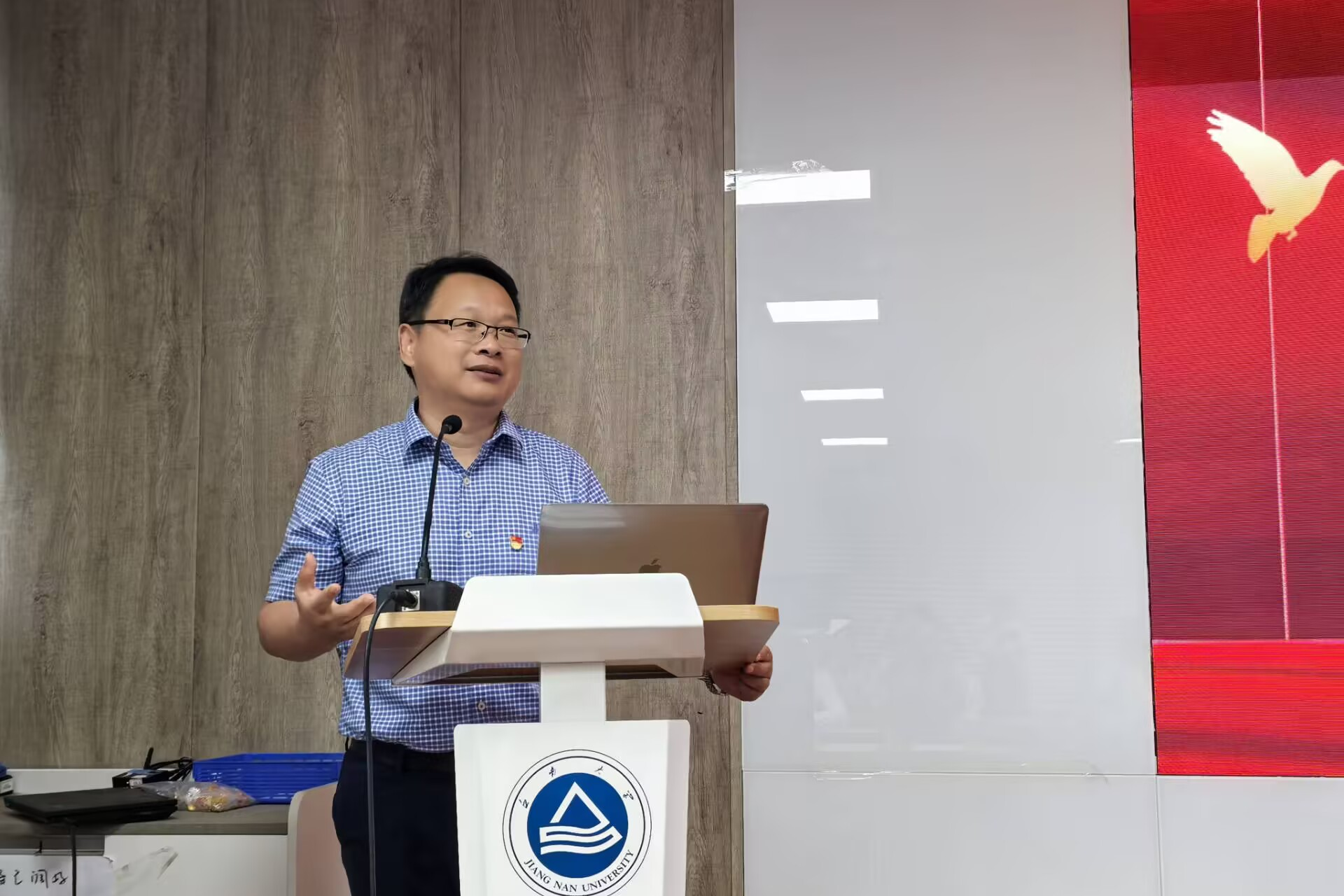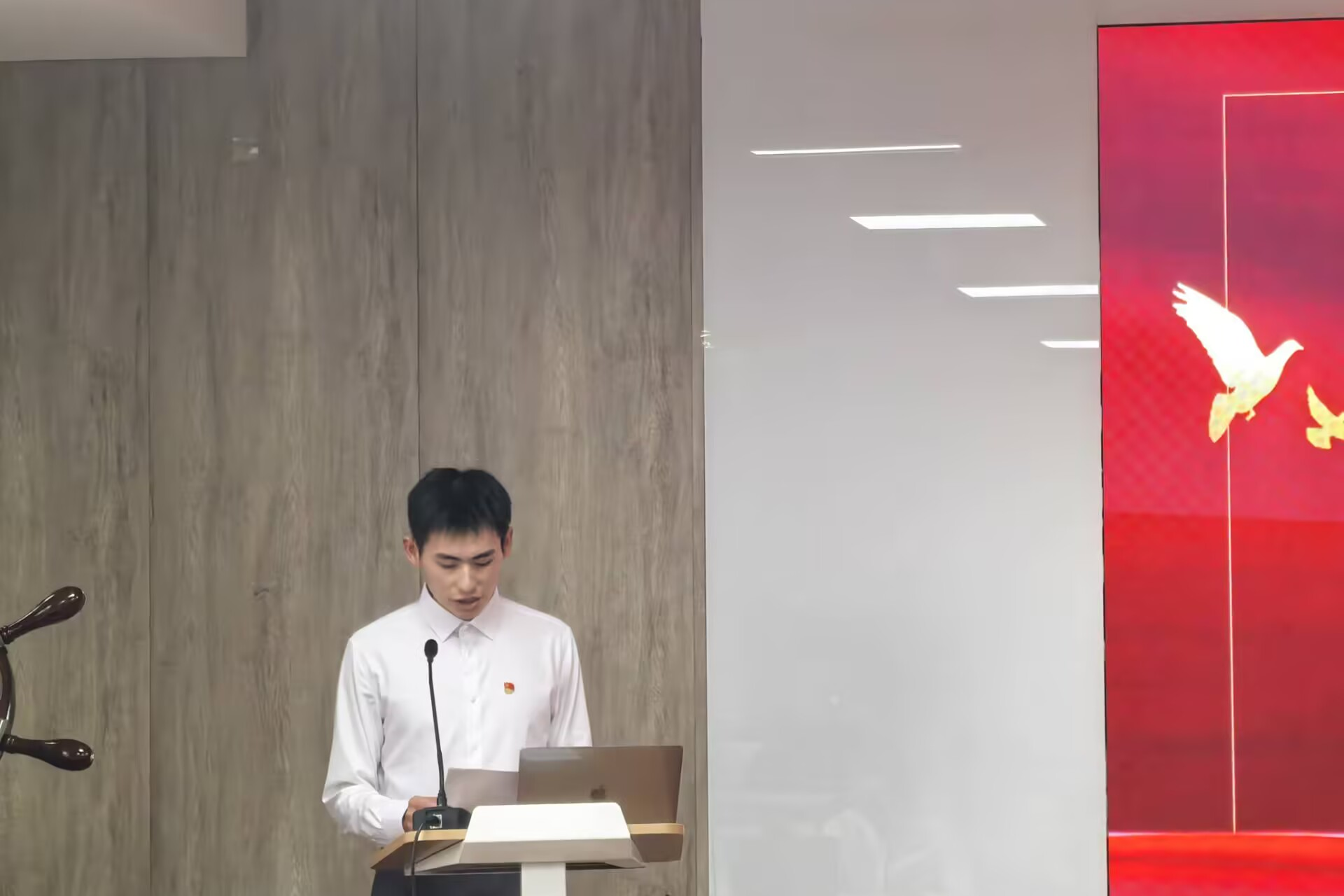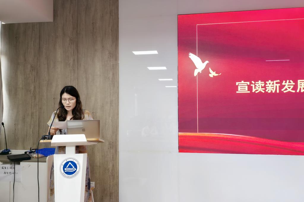 仪式在庄严的《国际歌》声中开始。张青宣读了新发展预备党员名单,并代表学院党委表示欢迎和祝贺。随后,在党员代表陈鲁文同志的领誓下,全体新党员面向党旗,高举右拳,庄严宣誓。铿锵誓言表达了为共产主义事业奋斗终身的坚定决心。宣誓后,潘庆伟、张青为预备党员佩戴党员徽章,标志着光荣使命的传承。