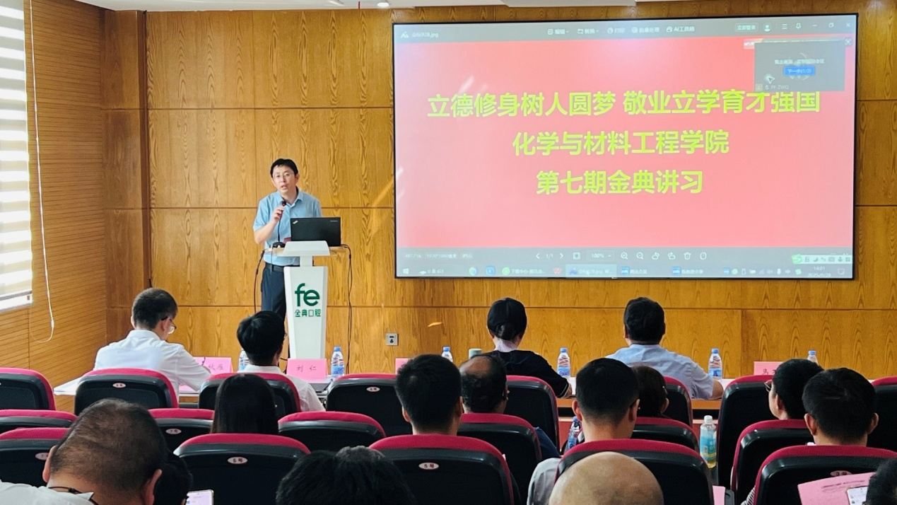 活动伊始,项东亮致欢迎辞。他回顾了雪豹日化在关键技术研发、生产规模拓展及行业影响力提升方面的发展历程,鼓励青年教师以企业需求为导向,将个人成长融入产教融合实践,为行业创新注入活力。院长刘仁在致辞中感谢雪豹日化对学院发展的长期支持,并围绕“做人、做事、做学问”对新教师提出殷切期望。他指出,校企合作是推动人才培养与产业需求精准对接的关键,希望青年教师以“金典讲习”为平台,立足学科前沿、锚定国家战略,在教学科研中践行教育家精神,为培育创新型人才和服务行业发展贡献智慧。