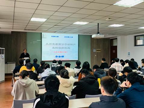 A316报告厅做了题为“从历史看高分子材料产业的创新机遇(以史为鉴知兴替)”的学术报告。 黄漫