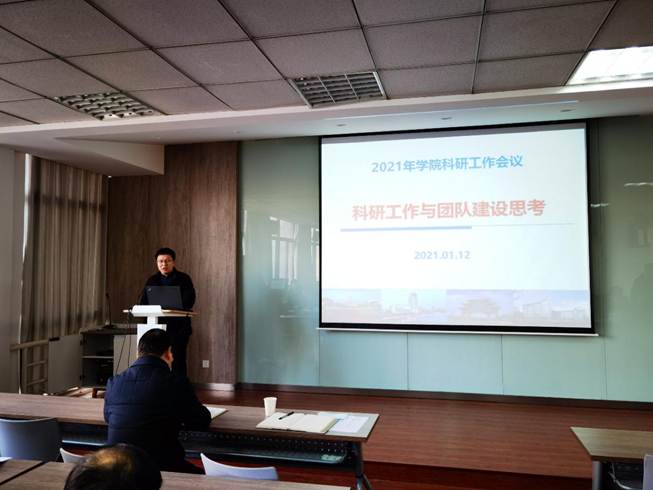 东为富院长作了《科研工作与团队建设》的主旨报告,明确了学院学科发展的定位与目标,介绍了2020年度全校以及学院科研完成情况、学院取得的科研工作主要进展,深入分析了当前存在的突出问题,提出了以标志性成果为导向的改革思路,强调了国家自然科学基金、科技奖励以及青年教师成才规划的重要性。