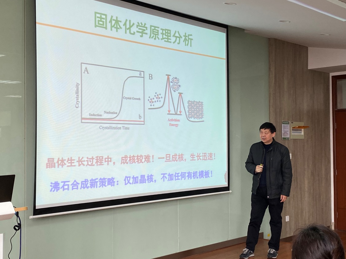 学术报告厅做了题为“沸石催化材料的绿色合成及其与金属纳米颗粒的协同催化”的精彩学术报告。报告会由刘小浩教授主持,黄漫