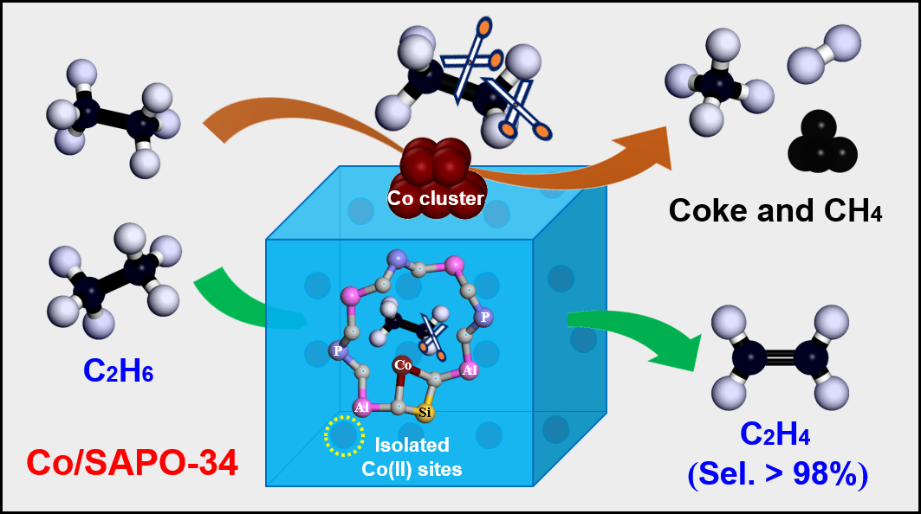 图2.Co/SAPO-34催化剂中钴物种落位及状态对催化乙烷无氧脱氢反应的影响