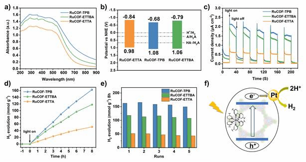 图4. RuCOFs的光学、光电性能及光催化产氢